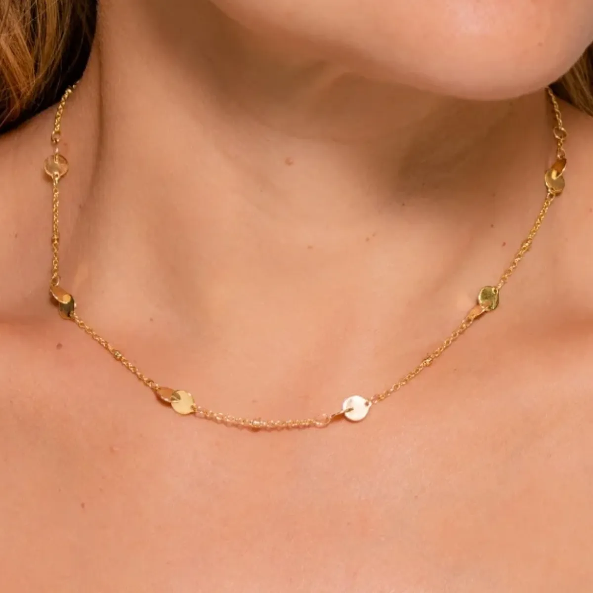 Colar Órbita – Corrente com Círculos Dourados Banhada a Ouro 18K